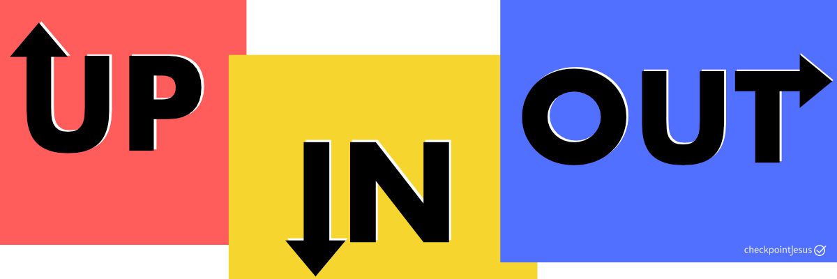 Weil  #FirstThingsFirst, fangen wir das Jahr mit den Grundlagen des checkpointJesus an: der Vision, eine Gemeinde mit heiliger Strahlkraft zu sein! Oder wie Jesus es sagen würde, wie "eine Stadt auf dem Berg zu sein" (Matthäus 5,14). Wie geht dieses heilige Leuchten? Drei Dimensionen gehören dazu (du hast schon richtig geraten): UP, IN und OUT. In anderen Worten: Der Draht zu Gott, Die Gemeinschaft innerhalb der checkpointJesus Community und die Beziehungen, die diese Community mit Anderen lebt.
